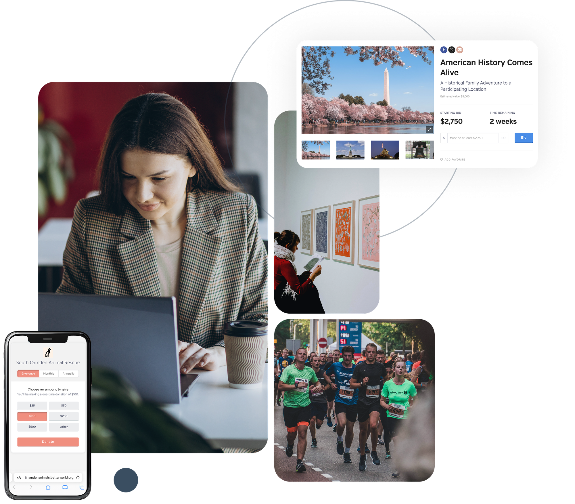 The BetterWorld platform offers a single place to manage every campaign you need to run for your nonprofit. Streamline operations with a central hub for auctions, raffles, and ticketing.