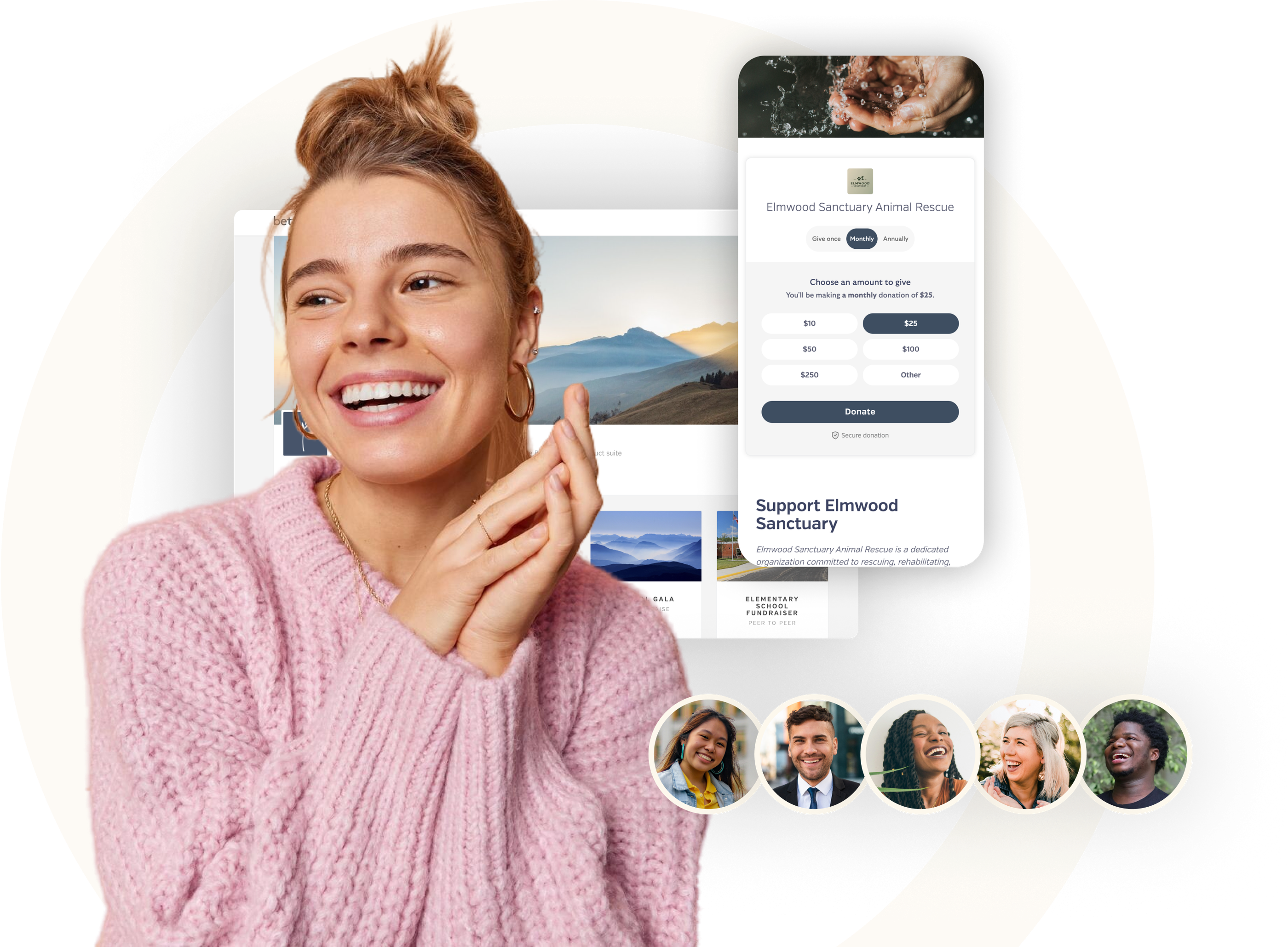 BetterWorld campaigns are designed specifically to look beautiful, no matter if your donors are using a phone, tablet, or computer.